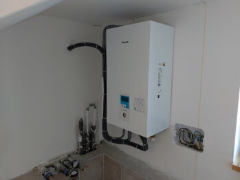 Dodanie a montáž tepelného čerpadla MIDEA M-THERMAL s výkonom 8,3kW. Technické vyhotovenie ALL IN ONE pre podlahové kúrenie a prípravu TUV.