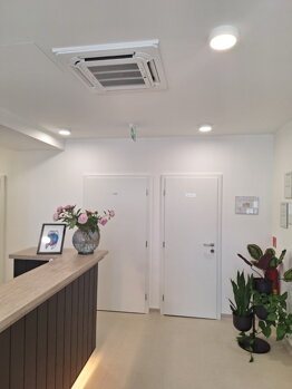 - Vykurovanie a chladenie je zabezpečené tepelnými čerpadlami vzduch-vzduch cez stropné jednotky